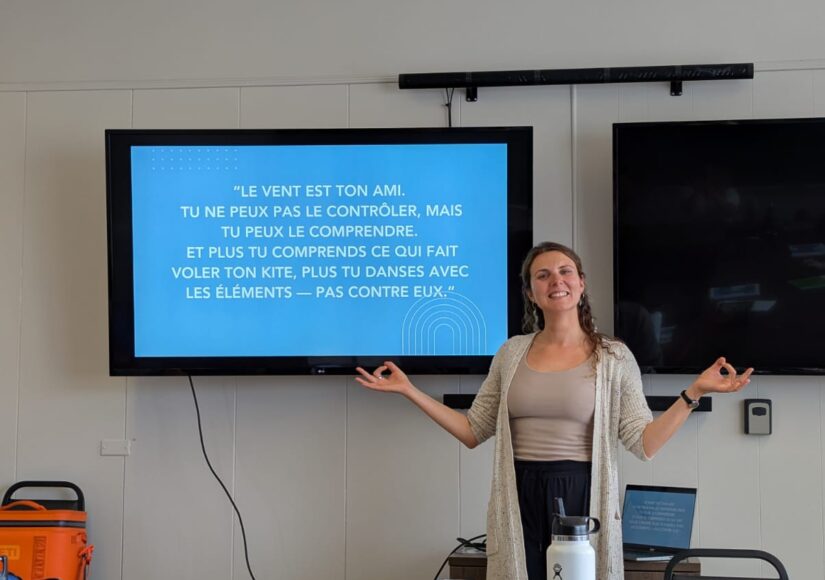 Cette deuxième portion de la formation se déroule en présentiel où les participants et participantes sont invités à participer à des cours en classe et sur le terrain. Cette phase de la formation a pour objectif d’approfondir les connaissances théoriques et développer les compétences d’enseignement du kite.