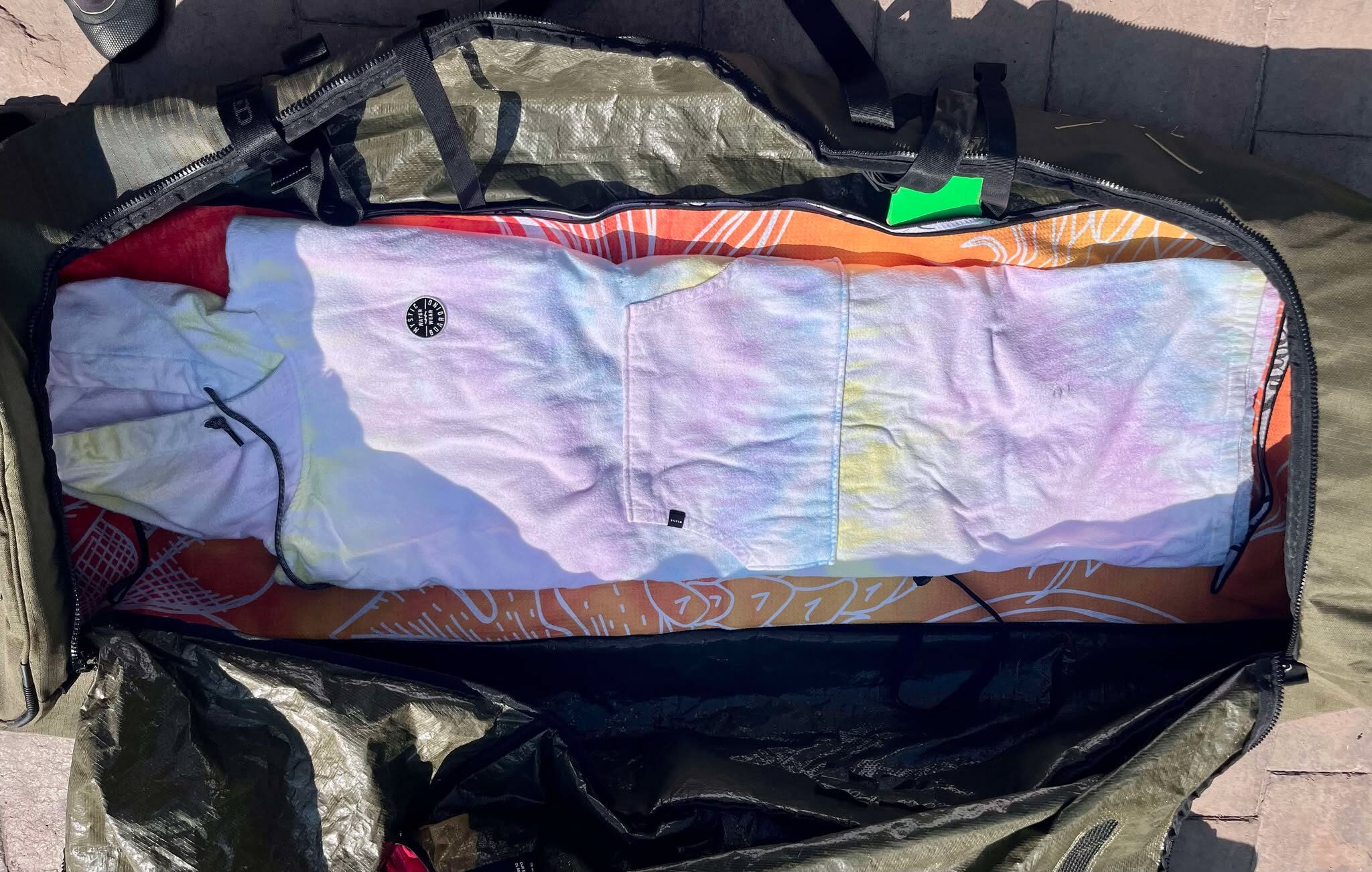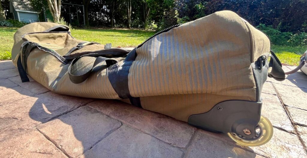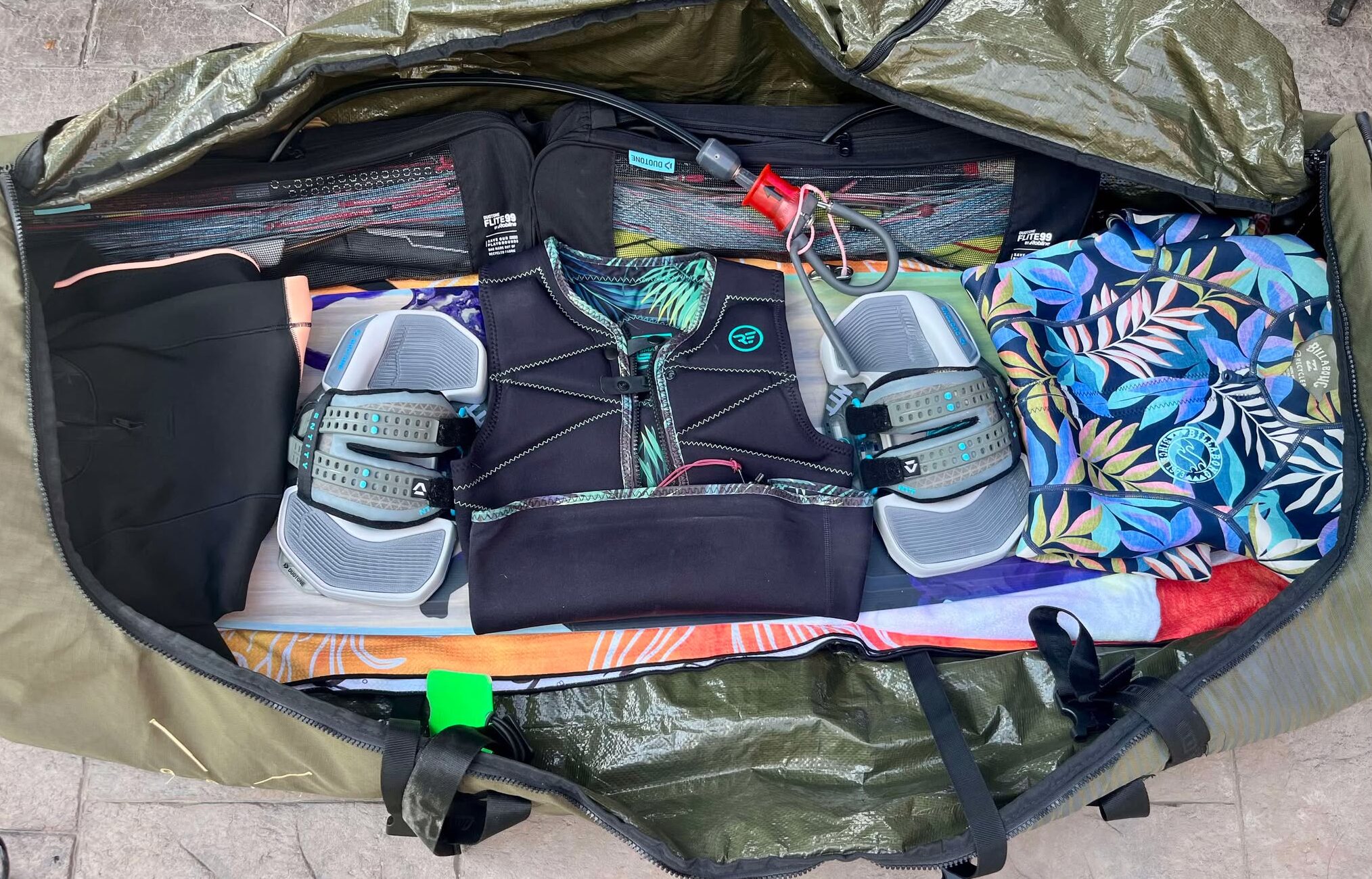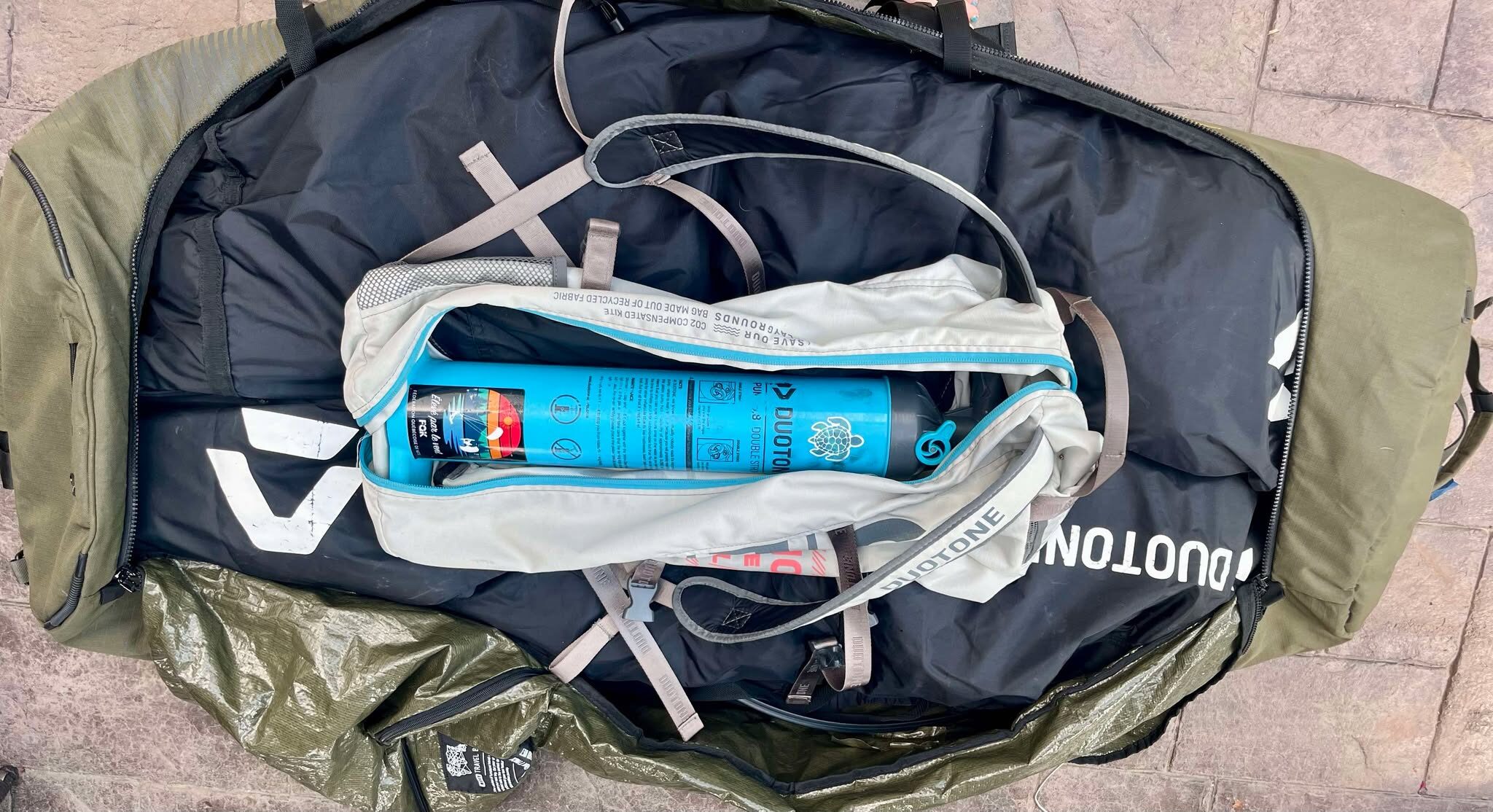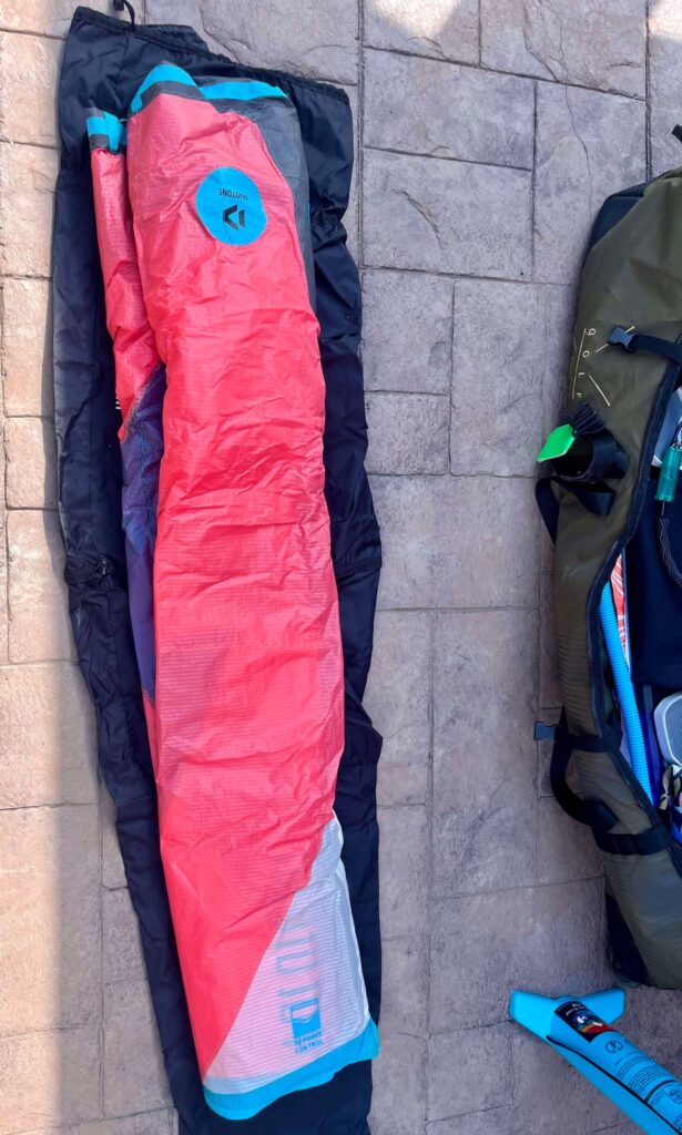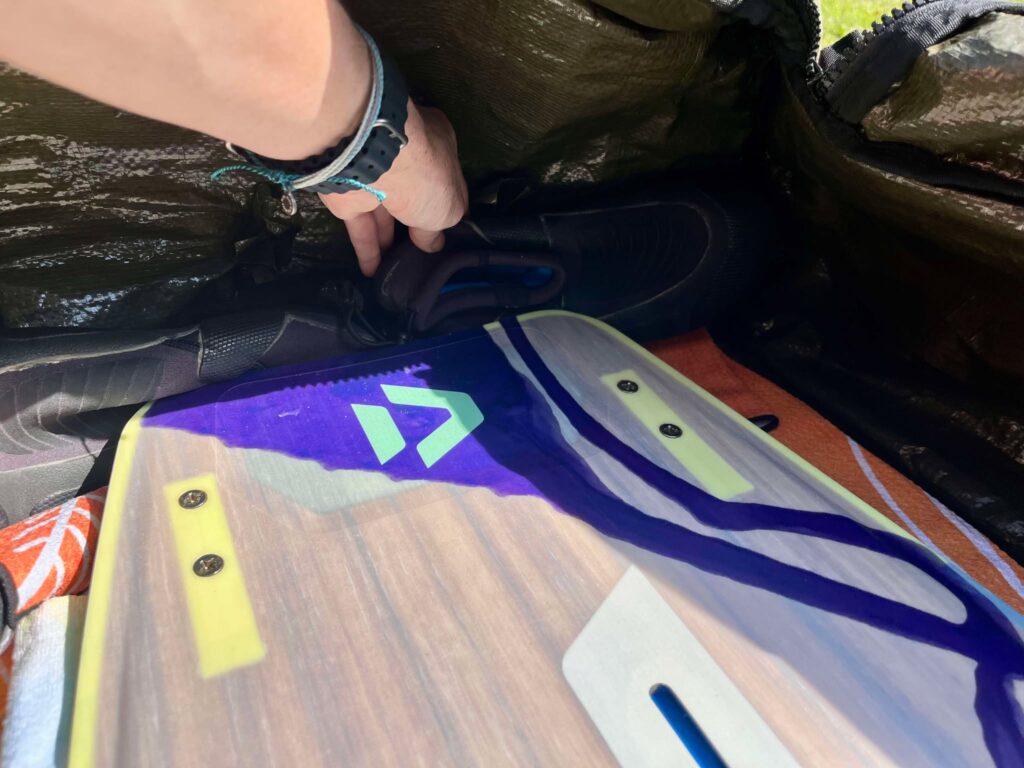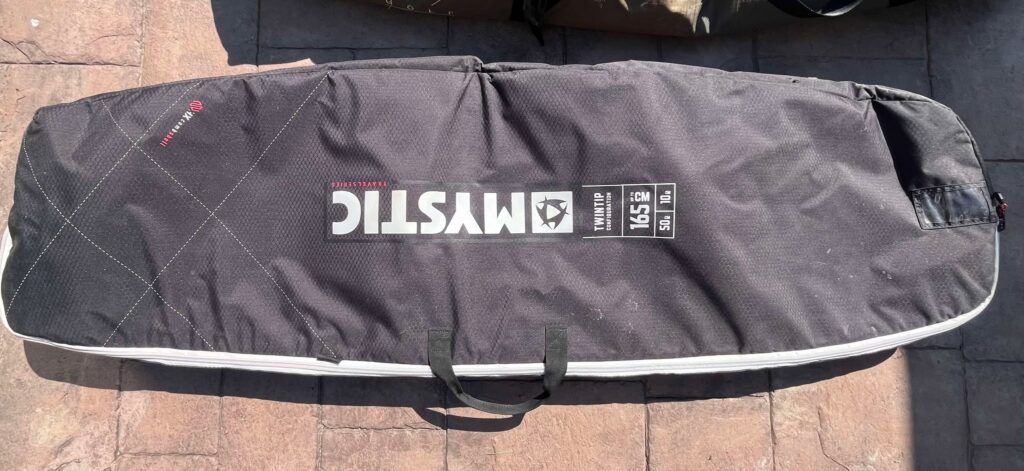 - Inconvénients : souvent plus mince (difficile d’y mettre plus de deux kites, voire impossible d’y ajouter la pompe et le harnais). Il faut généralement retirer les footstraps et les mettre dans la valise avec les vêtements. Transport plus compliqué sans chariot — à l’aéroport ça va, mais à l’hôtel ou en déplacement, ça peut devenir pénible.