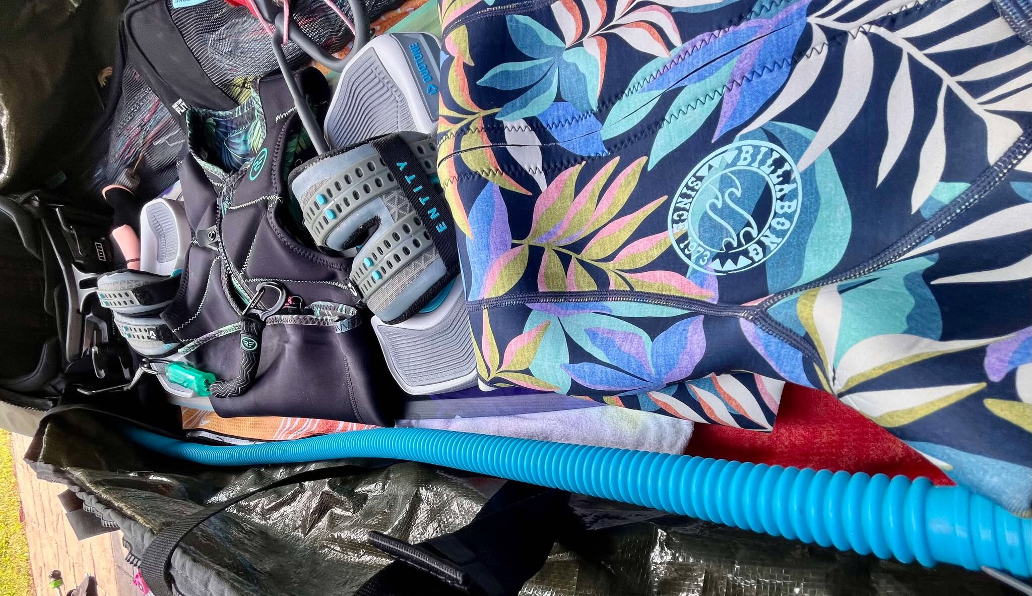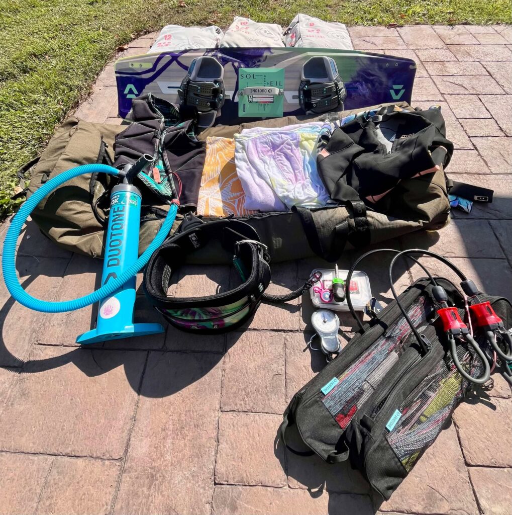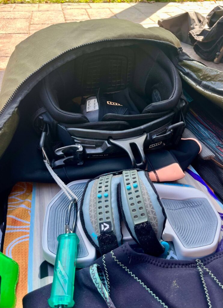 - 1 planche twintip (d’autres ajoutent un surf ou un foil, ce qui change beaucoup la donne au niveau du poids);