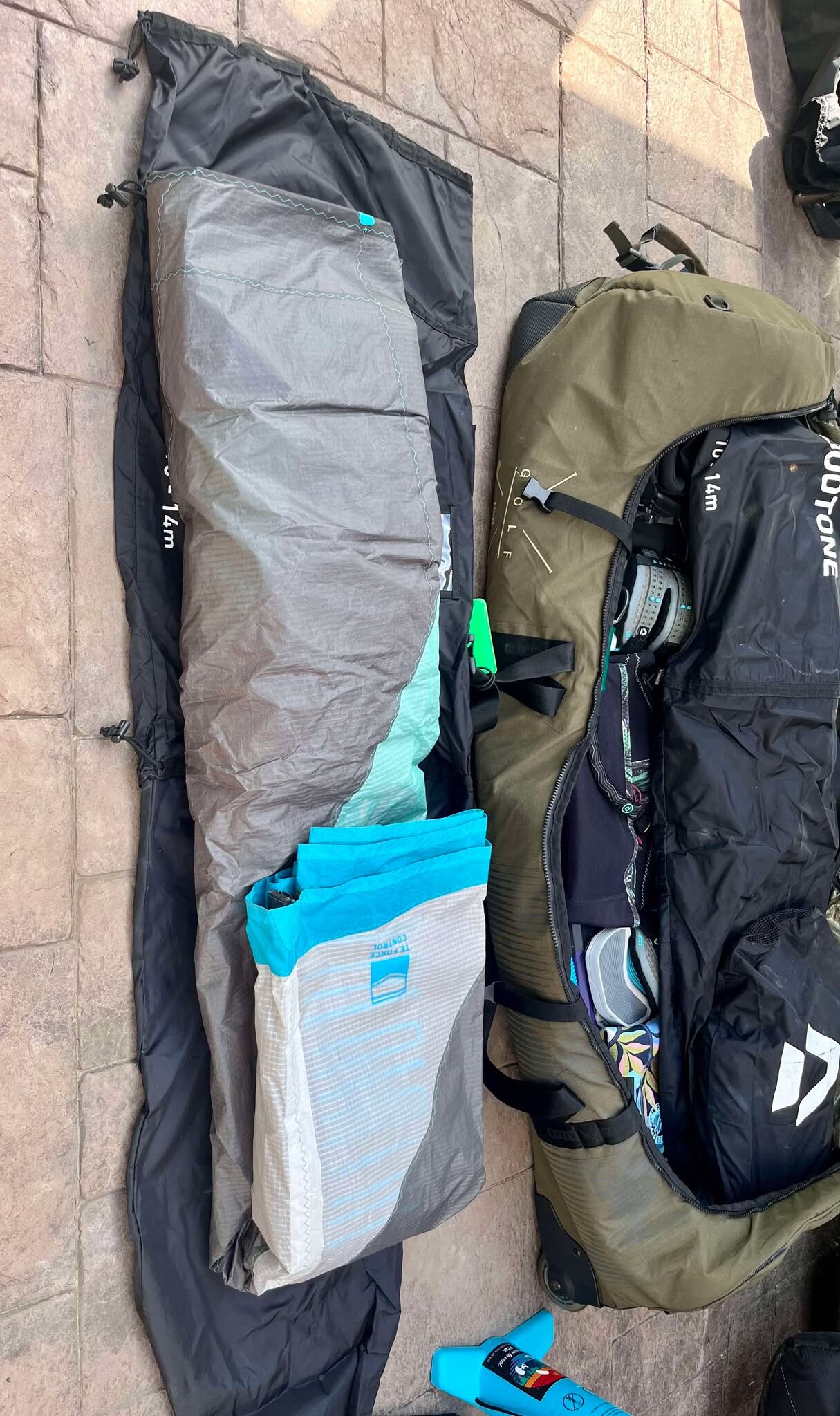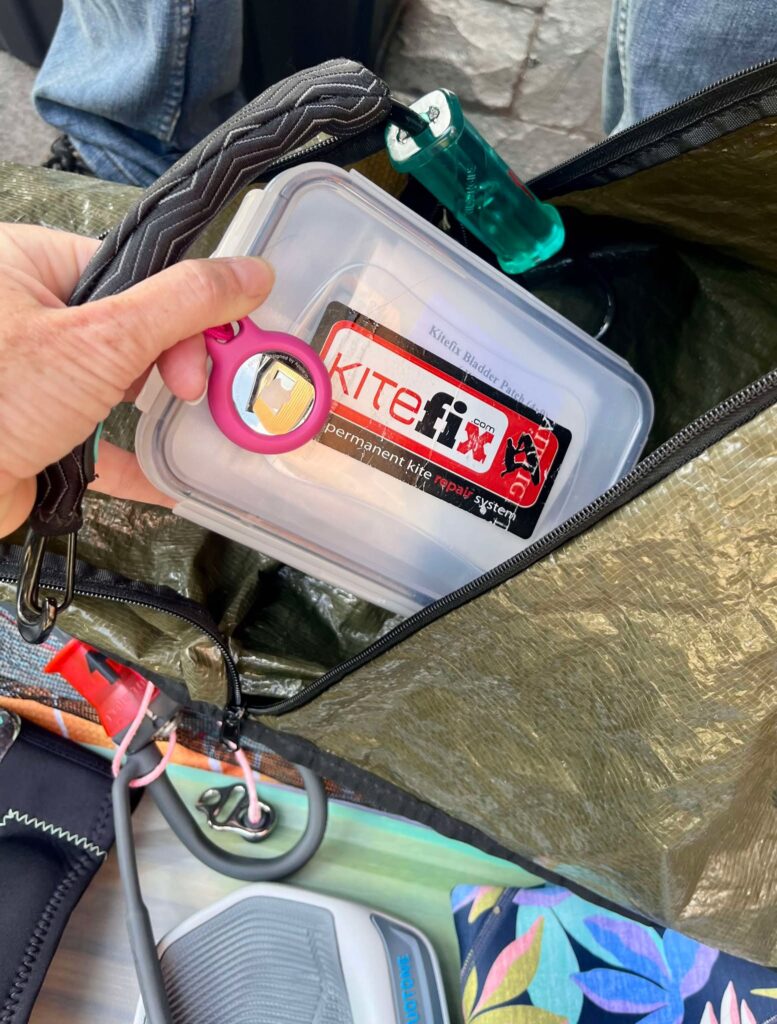 - 3 kites (selon les prévisions : 6-8-10M ou 8-10-12M; apporter 4 kites pose un problème pour le poids). SI j’apporte un 4e, la 6M se retrouve dans la valise;
