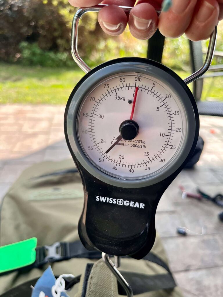 Avec cette organisation, le sac pèse environ 23 kg (limite de poids maximale habituelle : à confirmer selon la compagnie aérienne). Si je dépasse, je transfère le harnais et le casque dans la valise de vêtements.