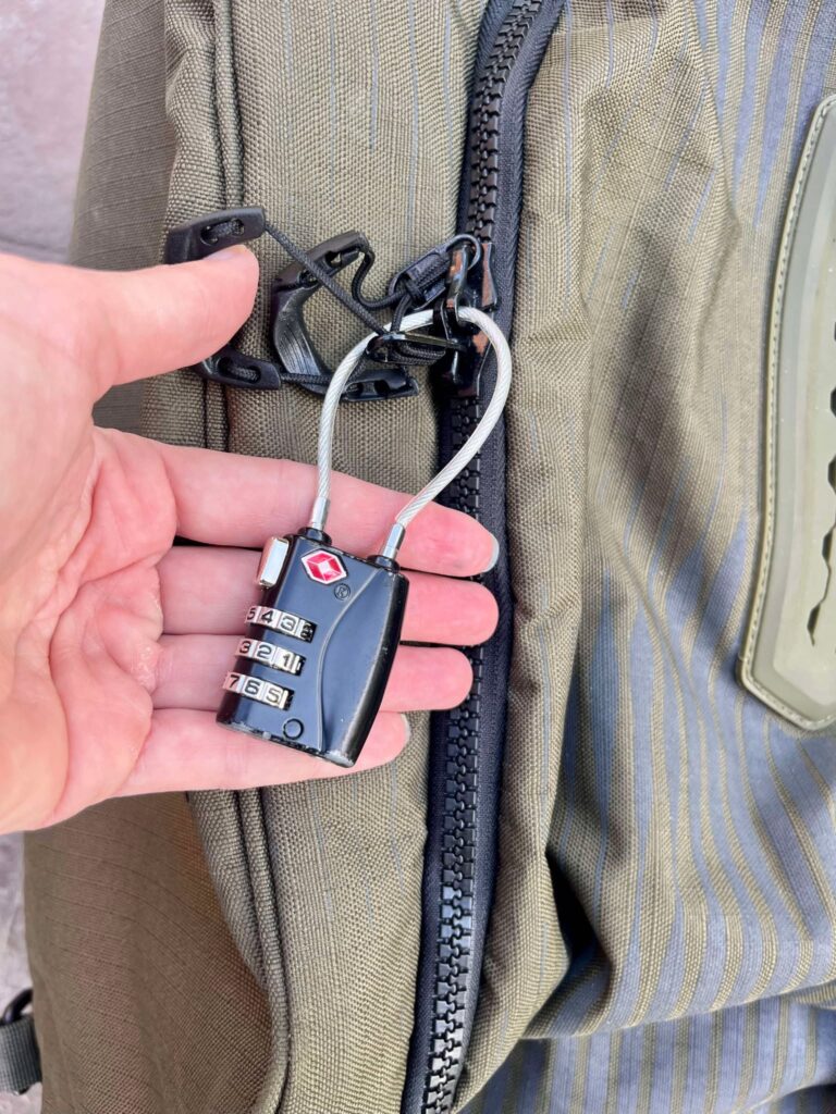 Je mets un cadenas sur le sac.