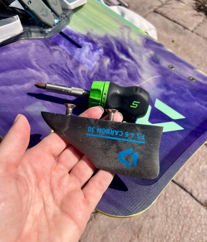 Rangez les ailerons dans une footstrap et la poignée si vous l’enlevez, dans un petit sac.